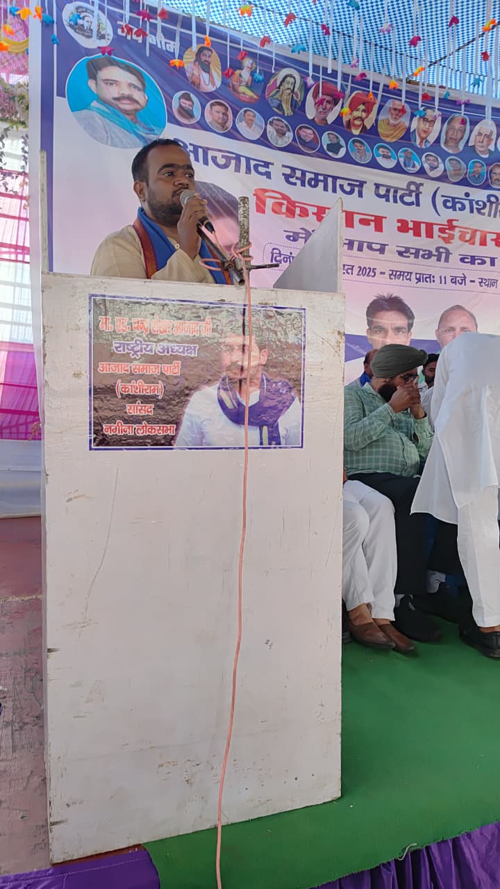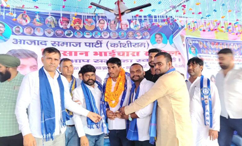 बिजनौर, राष्ट्रीय पंचायत संवाददाता। बिजनौर विधानसभा क्षेत्र के बालाजी बेंक्वेट हॉल ,चंदक में रविवार को भीम आर्मी आजाद समाज पार्टी (कांशीराम) का “किसान भाईचारा सम्मेलन” आयोजित किया गया, जिसमें किसानों की समस्याएं प्रमुखता से उठाई गईं।