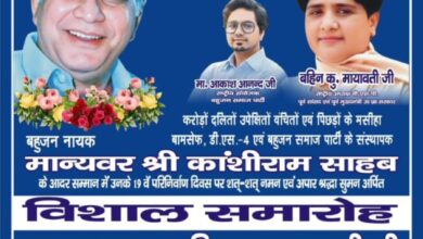 बिजनौर, संवाददाता राष्ट्रीय पंचायत। करोड़ों दलितों, उपेक्षितों,वंचितों एवं पिछड़ों के मसीहा, बामसेफ, डीएस—4 एवं बहुजन समाज पार्टी के संस्थापक मान्यवर…